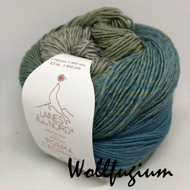 Laines du Nord Poema Cashmere Merinowolle mit Kaschmir Dochtgarn Farbverlauf 205 taubenblau/lindgrün/silbergrau