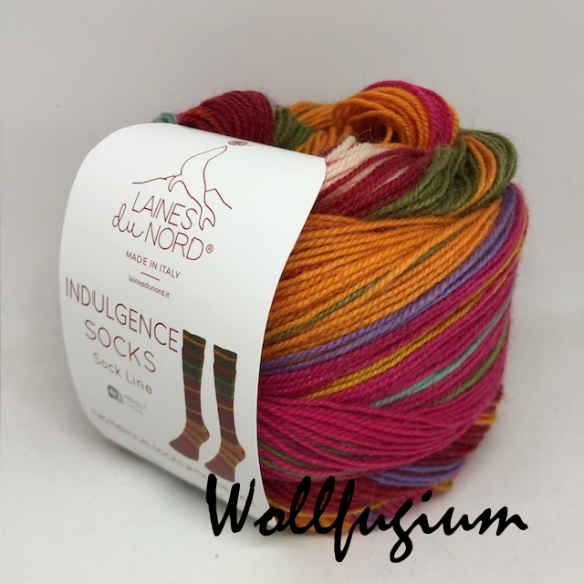 Indulgence Socks von Laines du Nord ist das Sockengarn, das kräftige Farben und lebendige Streifen abwechselt und so einen dynamischen und eleganten Effekt erzeugt.