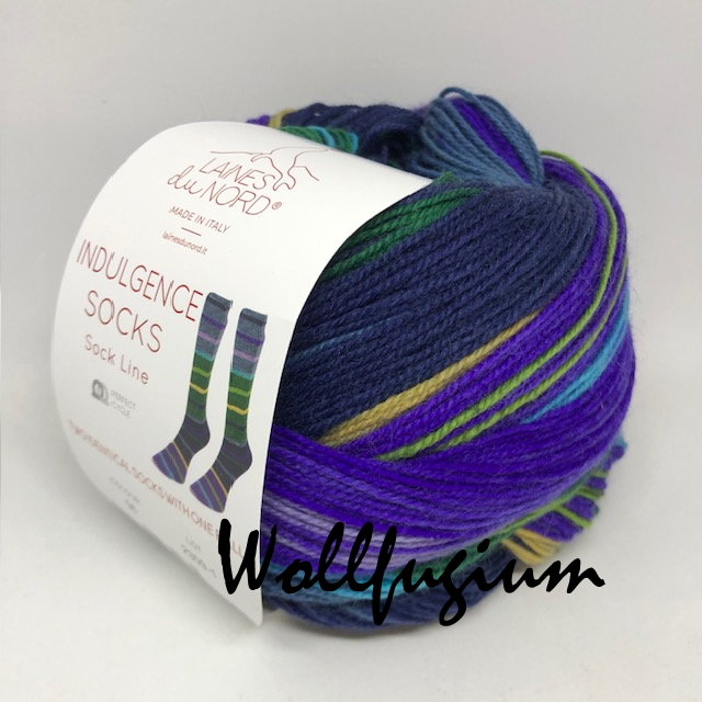 Indulgence Socks von Laines du Nord ist das Sockengarn, das kräftige Farben und lebendige Streifen abwechselt und so einen dynamischen und eleganten Effekt erzeugt.