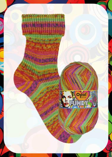 Die 4-fädige Kollektion Funky von Opal vermittelt eine Lebenseinstellung, die Individualität und Freude in den Mittelpunkt stellt, aber auch ein Ausdruck für Mode und Stil.