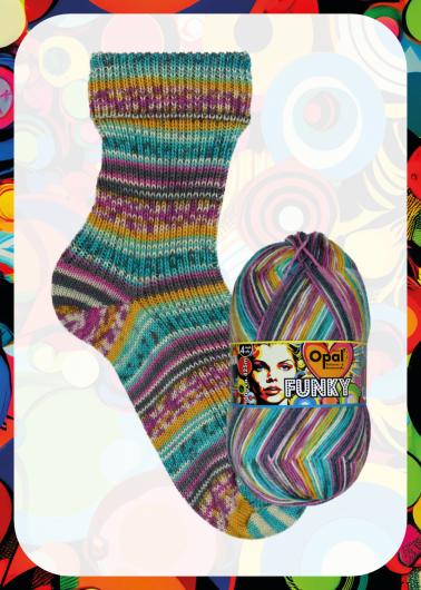 Die 4-fädige Kollektion Funky von Opal vermittelt eine Lebenseinstellung, die Individualität und Freude in den Mittelpunkt stellt, aber auch ein Ausdruck für Mode und Stil.