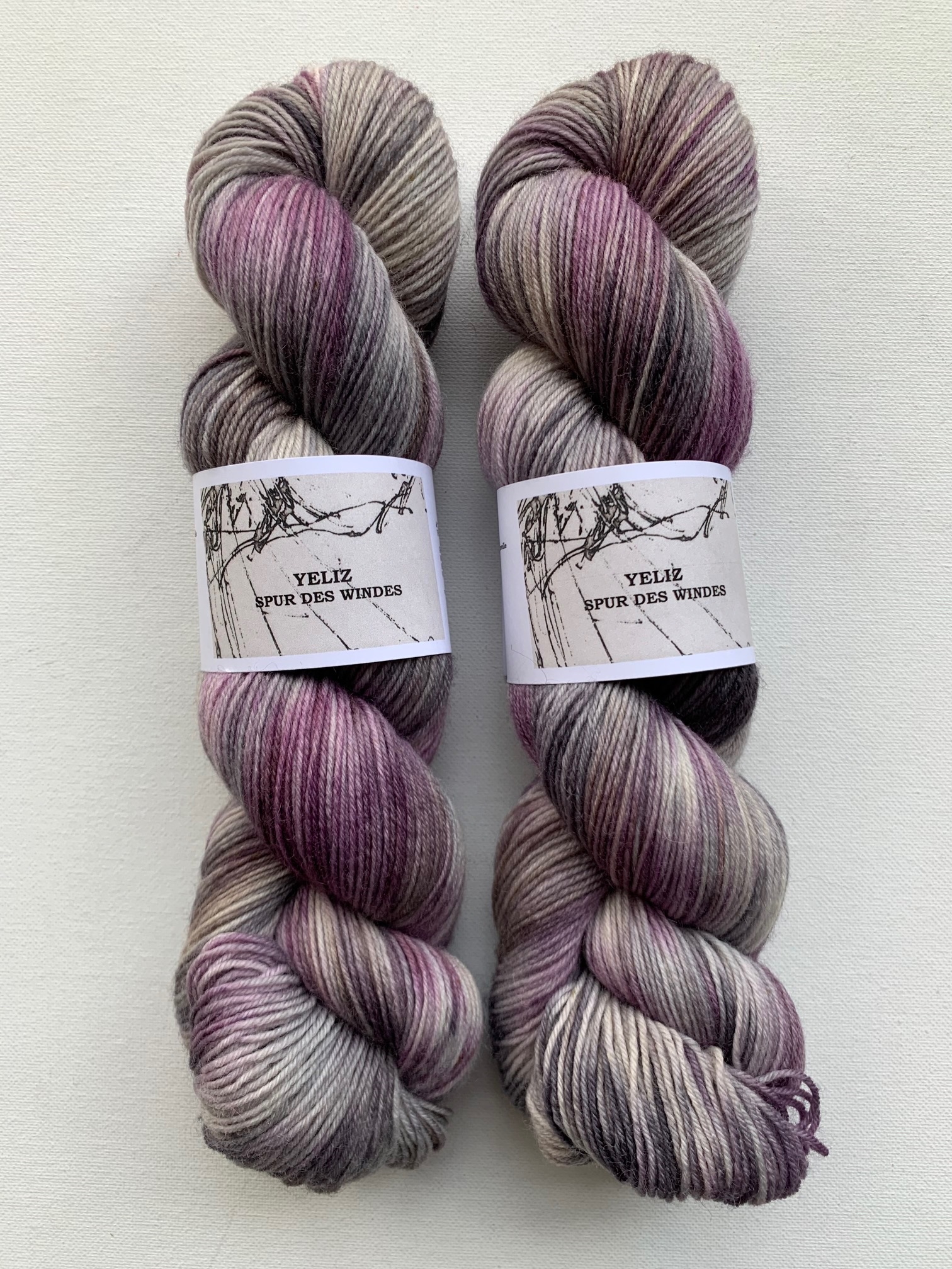 Von Franziska Uhl handgefärbte Sockenwolle auf Atelier Zitron/Trekking 4-fach Fb. Yeliz – Spur des Windes